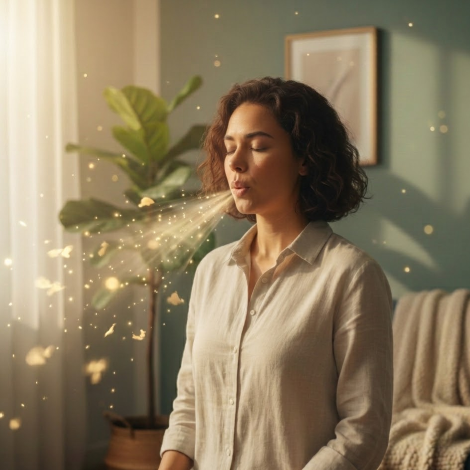 Parfois, l'angoisse est si forte qu'on a l'impression d'être une cocotte-minute sur le point d'exploser. Cet exercice utilise l'expiration comme une valve de sécurité pour expulser l'excès de tension physique et émotionnelle.